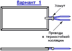 При изготовлении контактных выводов по вариантам 1 и 2 применяется термопровод со стойкостью изоляции до 200 оС. Сечение провода подбирается исходя из электротехнических параметров электронагревателя.